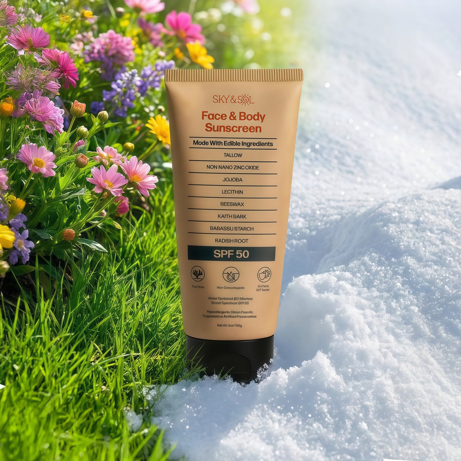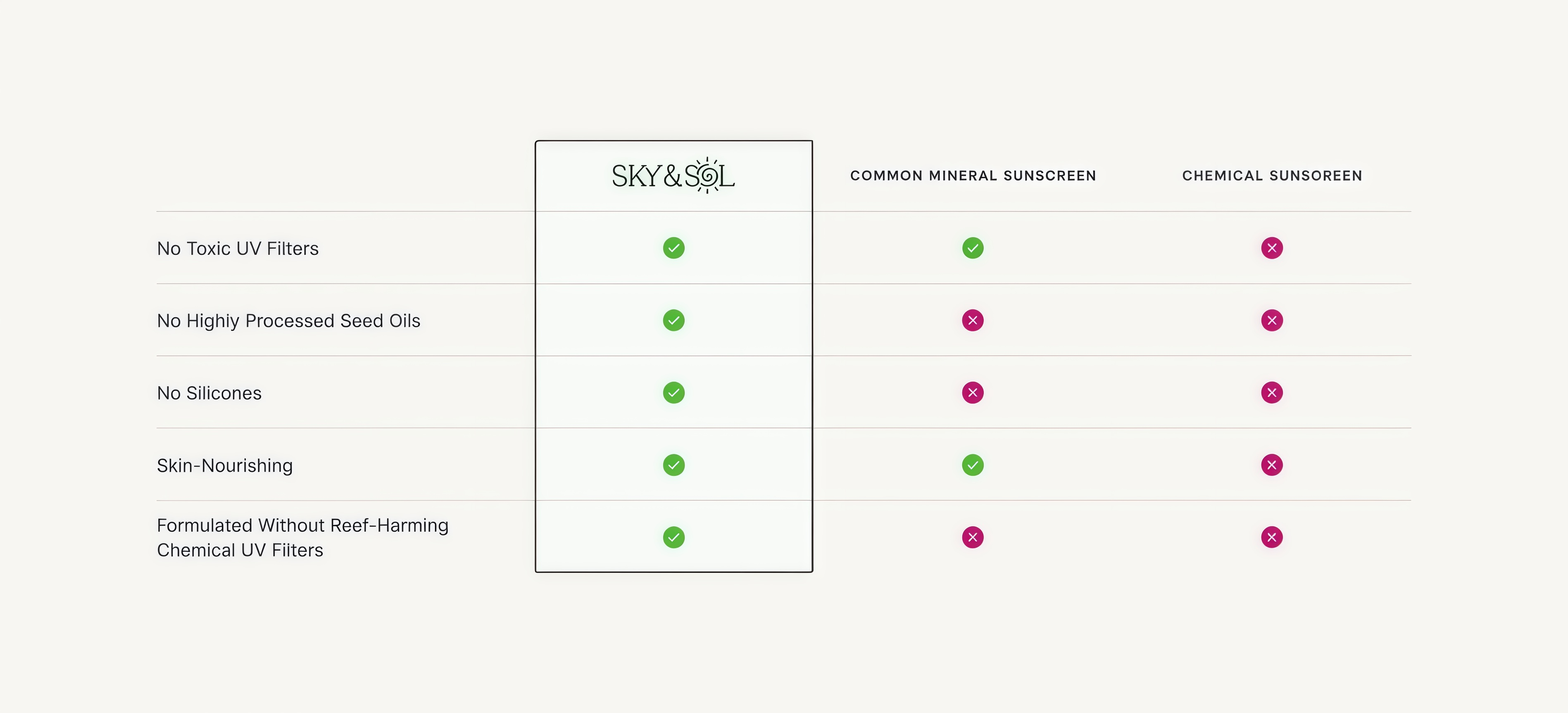 Sky & Sol flips the script.We use pure ingredients you can pronounce and recognize—because your skin deserves safety, andyour body deserves the best.